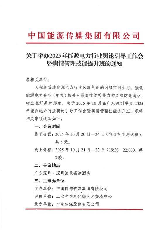 10月举办能源电力行业舆论引导工作会暨舆情管理技能提升班